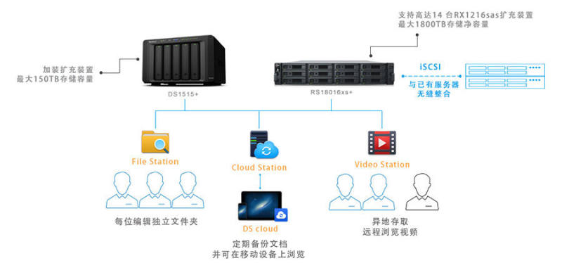 浙江省永乐影视前后左右各自在2014及二零一五年选购了1台群晖DS1515+和RS18016xs+,并将NAS做为企业办公共享文件、混合开发规范化管理和备份素材图片文档的用处。聊到怎么会挑选群晖NAS存储,浙江省永乐影视采办总负责人孙先生如是说: